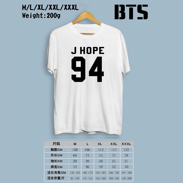 BTS防弹少年团-94J HOPE白色印花圆领短袖T恤M-L-XL-XXL-XXXL