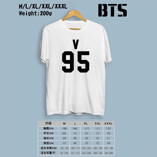 BTS防弹少年团-95V白色印花圆领短袖T恤M-L-XL-XXL-XXXL