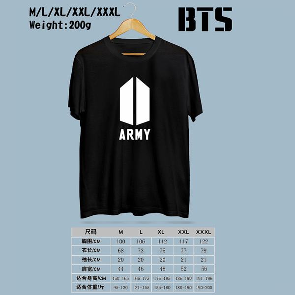 BTS防弹少年团-ARMY黑色印花圆领短袖T恤M-L-XL-XXL-XXXL