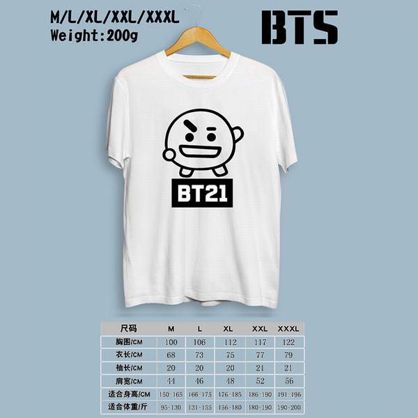 BTS防弹少年团BT21-机器人白色印花圆领短袖T恤M-L-XL-XXL-XXXL