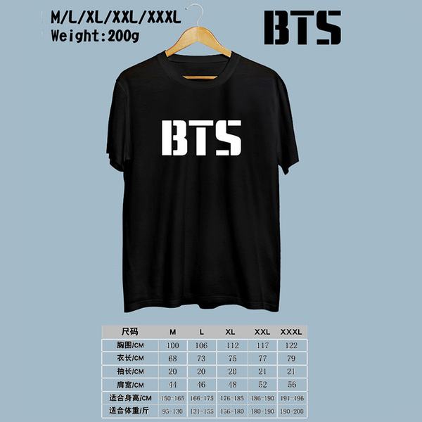 BTS防弹少年团-BTS字母黑色印花圆领短袖T恤M-L-XL-XXL-XXXL