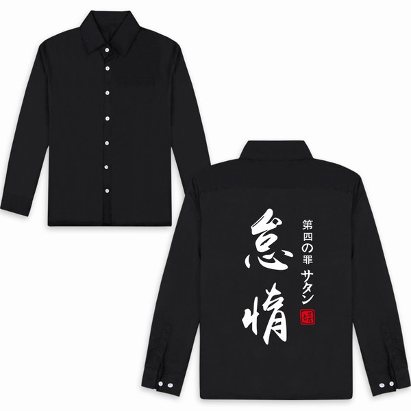 七宗罪 黑色怠惰 流行时尚长袖衬衫M L XL XXL