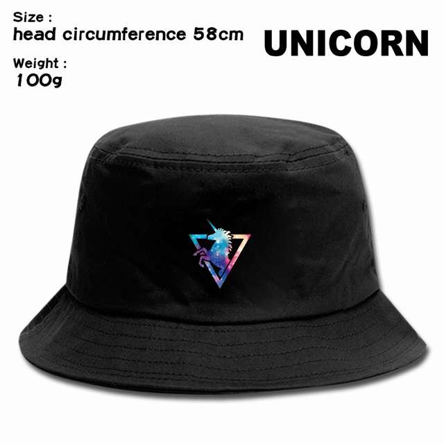 独角兽 黑色 卡通动漫丝印帆布渔夫帽帽子 头围58CM 100G