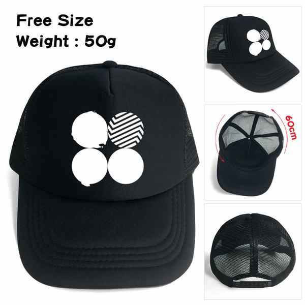 BTS防弹少年团四圈标志丝印潮流网格帽子