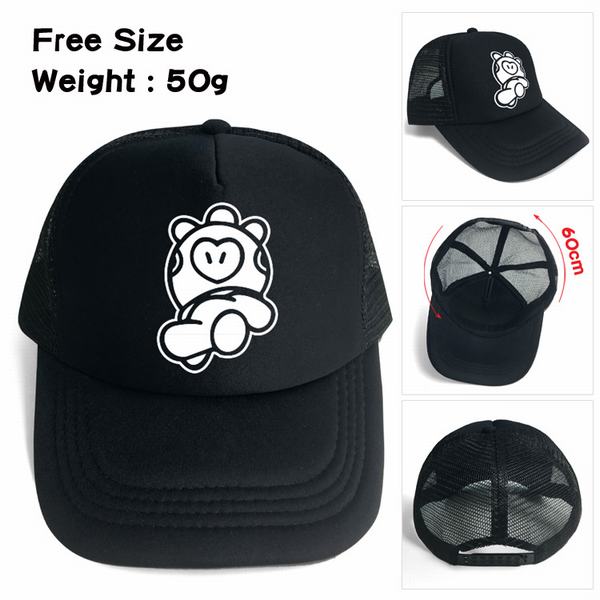 宠物小精灵小志人物标志丝印潮流网格帽子