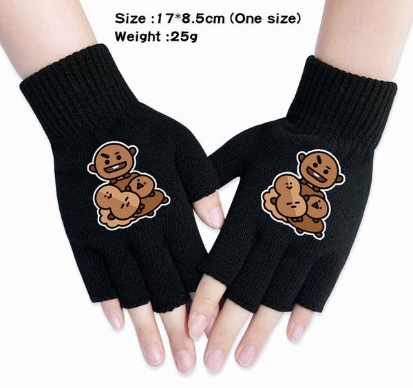 防弹少年团 BTS-5A 黑色 动漫针织半指手套