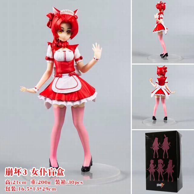 崩坏3 女仆八重樱 盲盒盒装手办摆件模型 21CM 约200G 彩盒尺寸:16.5X13X29CM 一箱30个