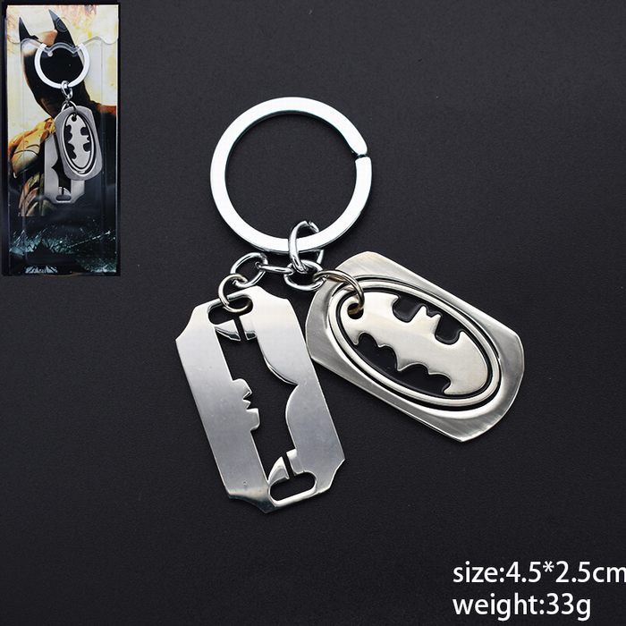 商品名称: 蝙蝠侠双坠不锈钢钥匙扣 挂件