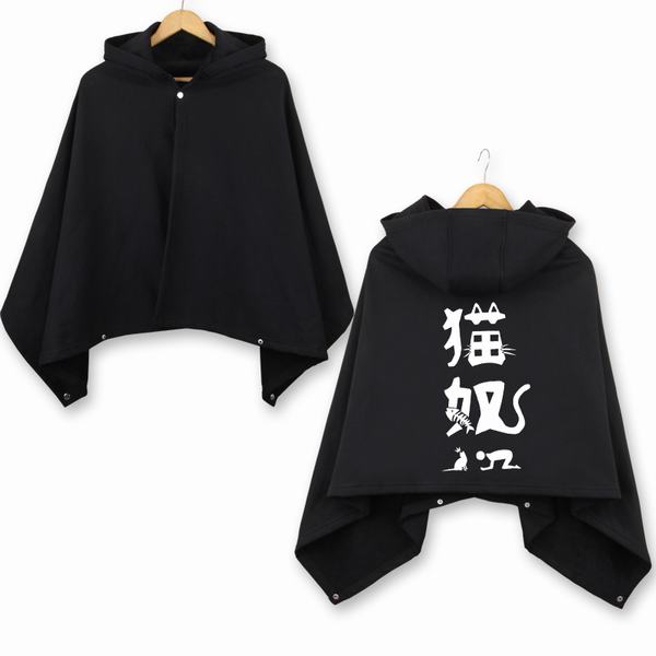 猫奴 不倒绒棉双合扣连帽 黑色 披风 均码