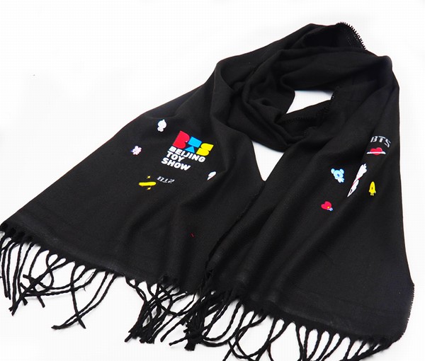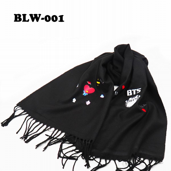 BLW0-1 BTS 防弹少年团 BT21防弹衣款黑色印花保暖围巾