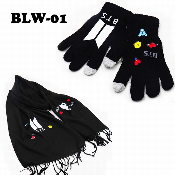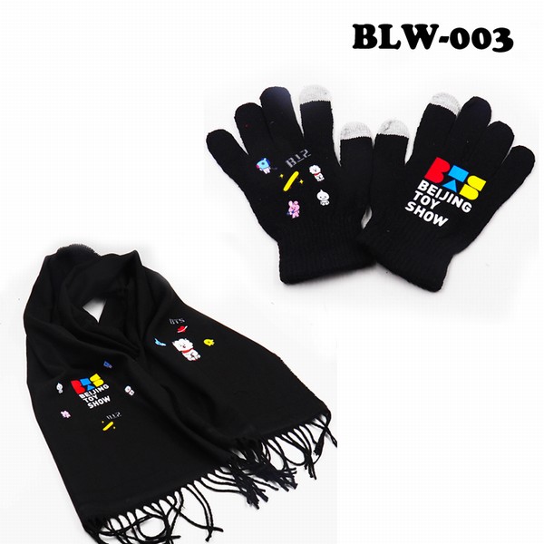 BTS 防弹少年团 BT21 BLW-01 黑色印花全指手套+围巾一套出