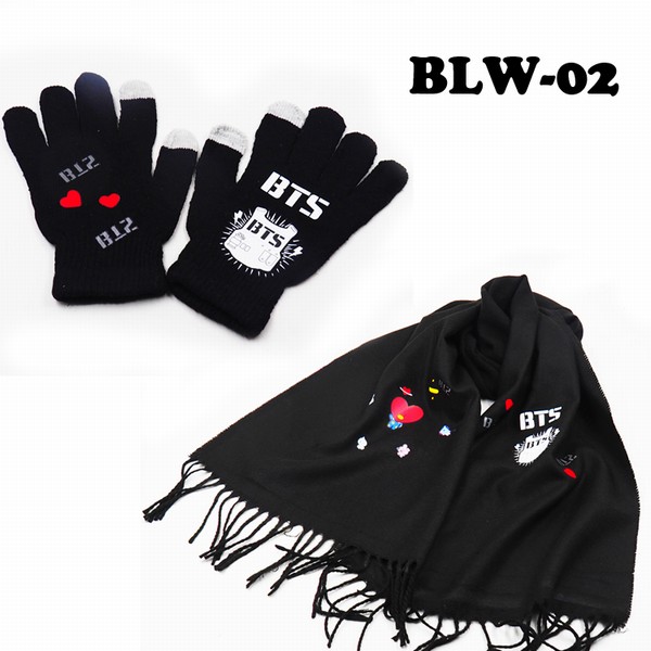 BTS 防弹少年团 BT21 BLW-02 黑色印花全指手套+围巾一套