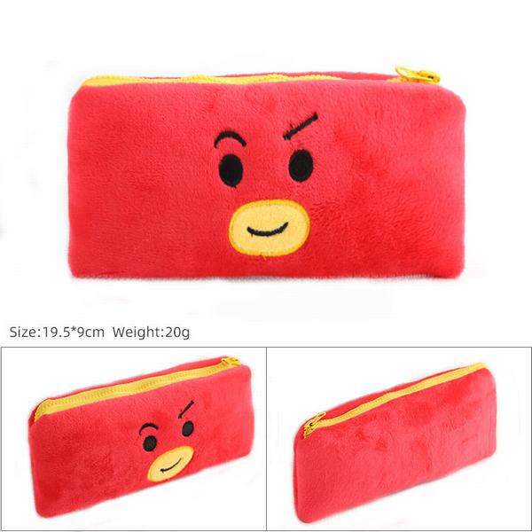 BTS 防弹少年团 红色爱心 毛绒布料3D文具盒卡通学生笔袋收纳袋包包 19.5X9CM 20G