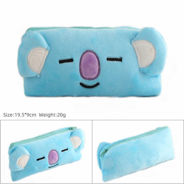 BTS 防弹少年团 蓝色考拉 毛绒布料3D文具盒卡通学生笔袋收纳袋包包 19.5X9CM 20G