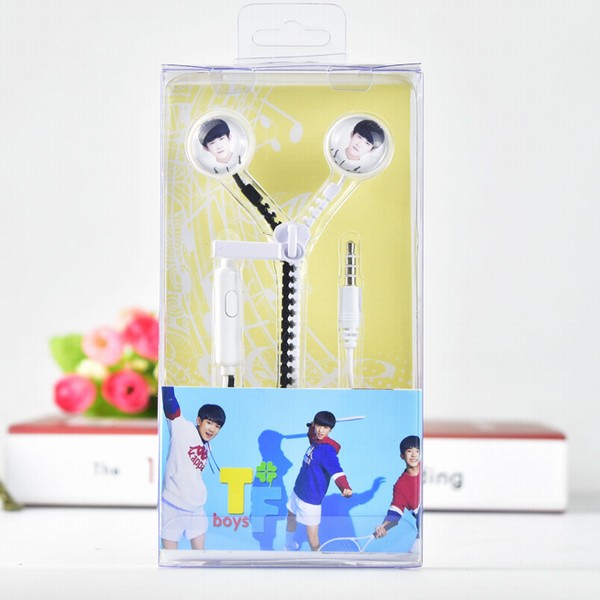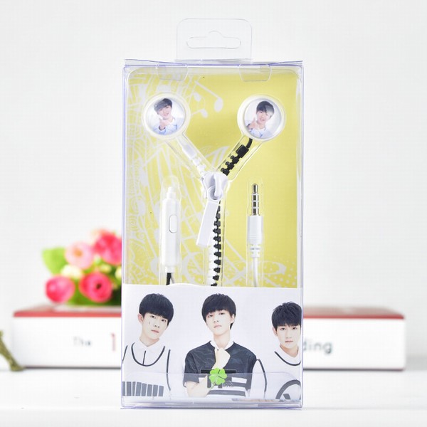 王俊凯明星周边双色拉链线可语音入耳式耳机