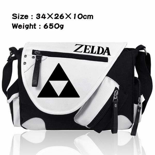 塞尔达传说三角形标志加厚PU皮帆布布拼色黑白挎包