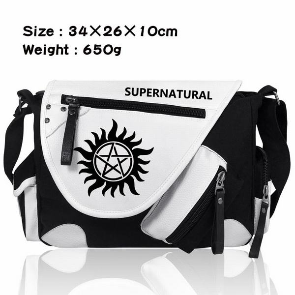 邪恶的力量标志加厚PU皮帆布布拼色黑白挎包