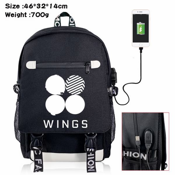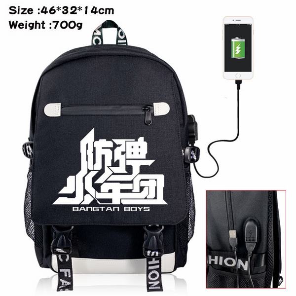 BTS-防弹少年团B款 帆布丝印双肩背包数据线背包