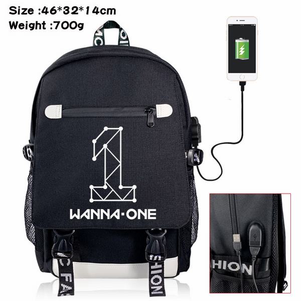 WANNA-ONE韩国明星周边 A款帆布丝印双肩背包数据线背包