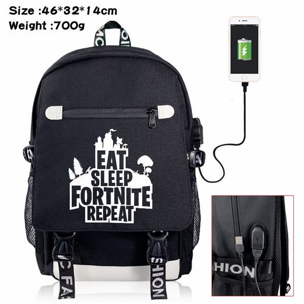 堡垒之夜-A款帆布丝印双肩背包数据线背包