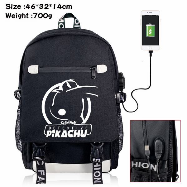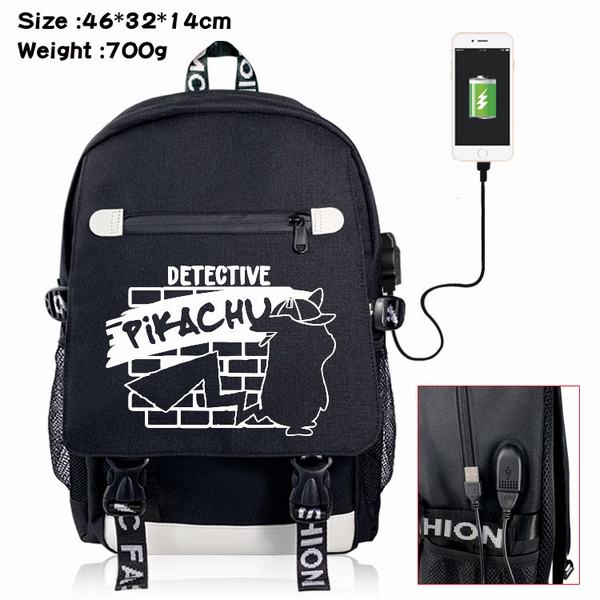 大侦探皮卡丘-A款帆布丝印双肩背包数据线背包