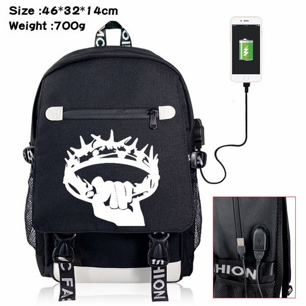 权力的游戏-A款帆布丝印双肩背包数据线背包