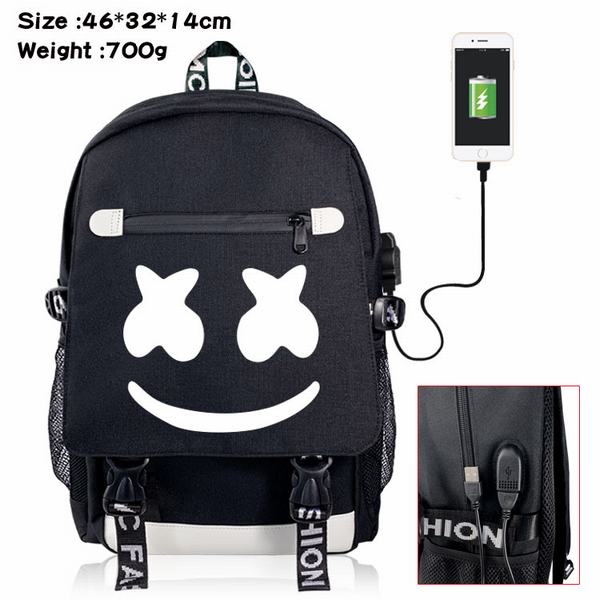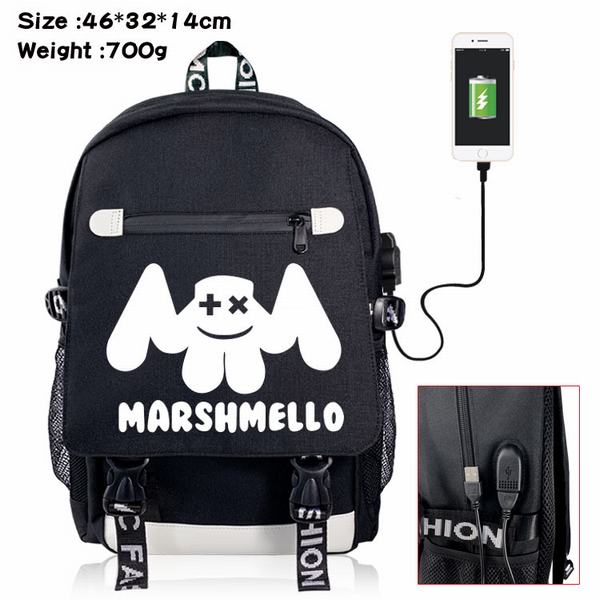 DJ棉花糖-A款 帆布丝印双肩背包数据线背包