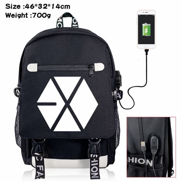 EXO-韩国明星周边 A款帆布丝印双肩背包数据线背包