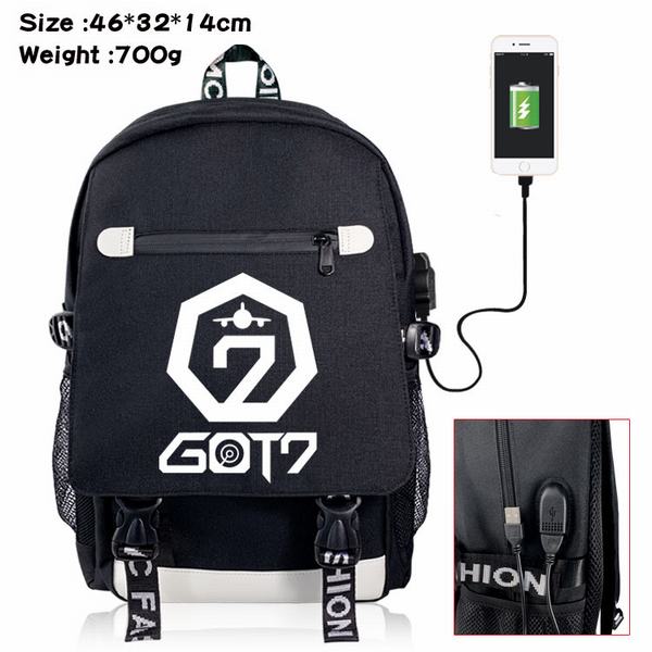 GOT7韩国明星周边 帆布丝印双肩背包数据线背包
