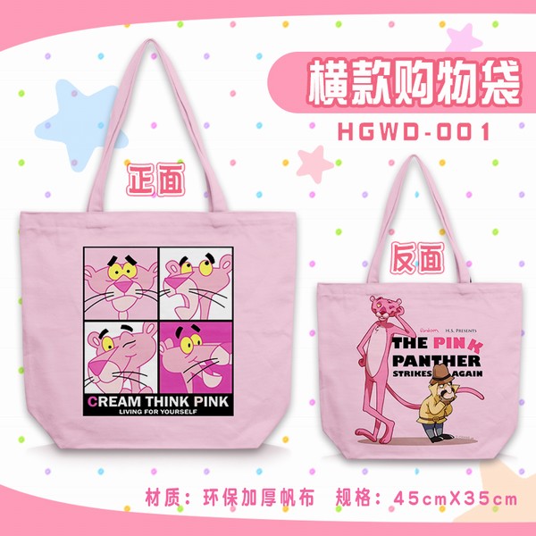HGWD001-粉红豹 傻豹 动漫单肩帆布拉链购物袋 45X35CM