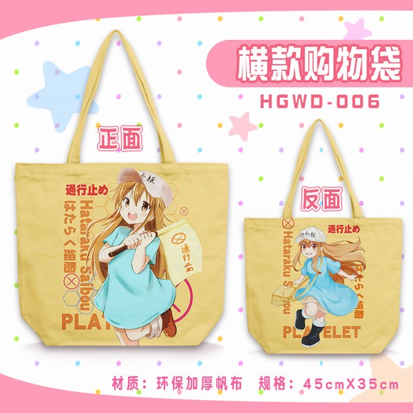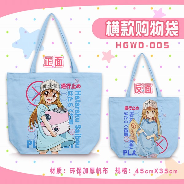 HGWD005-工作细胞 动漫单肩帆布拉链购物袋 45X35CM