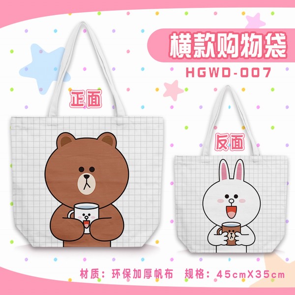 HGWD007-布朗熊 动漫单肩帆布拉链购物袋 45X35CM