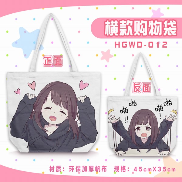 HGWD012-menhera 表情包 单肩帆布拉链购物袋 45X35CM