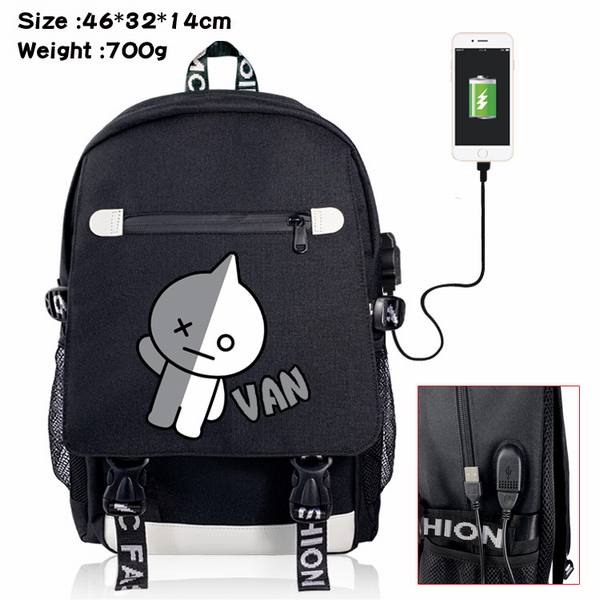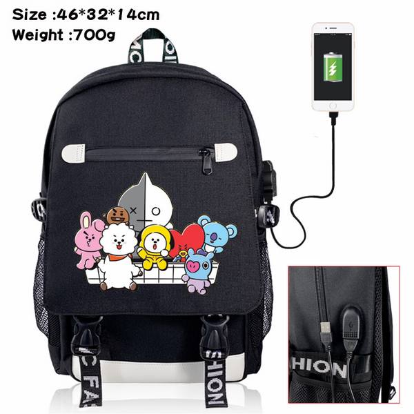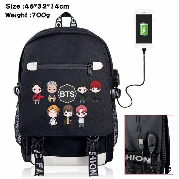 bts-5A 防弹少年团 黑色 彩印数据线双肩背包