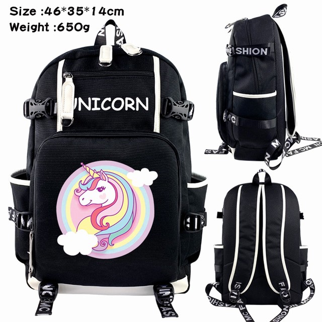独角兽 黑色 动漫双肩包学生背包书包 46X35X14CM 650G