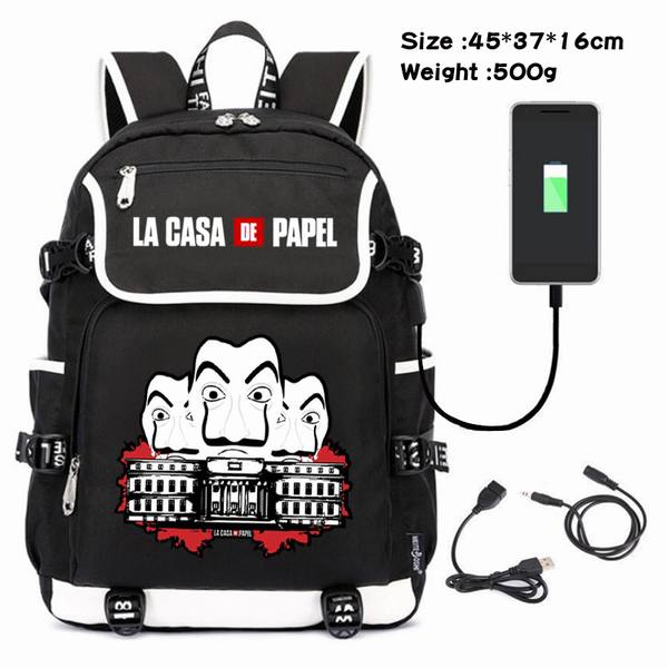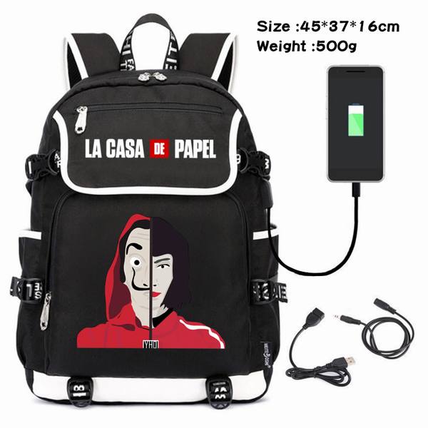 纸钞屋-227 动漫600D防水帆布双肩包USB充电数据线背包