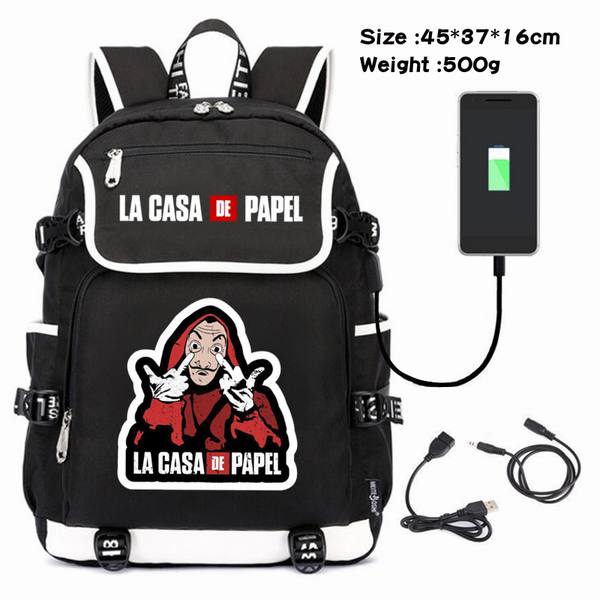 纸钞屋-227 动漫600D防水帆布双肩包USB充电数据线背包