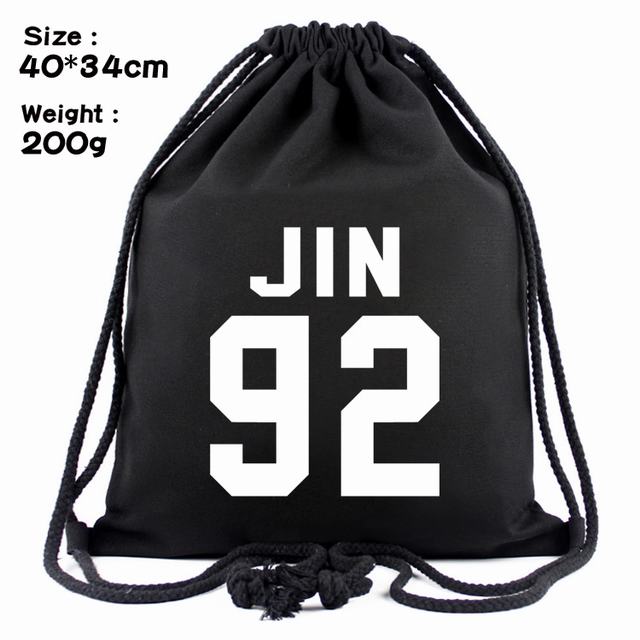 BTS防弹少年团JIN92标志丝印帆布束口背包