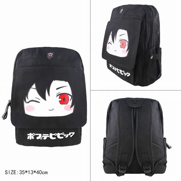 POP子和PIPI美的日常 POP子表情包 帆布黑色拉链背包双肩包 35X13X40CM