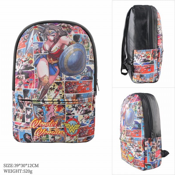 神奇女侠 全彩PU彩色面 时尚双肩包背包 39X20X12CM