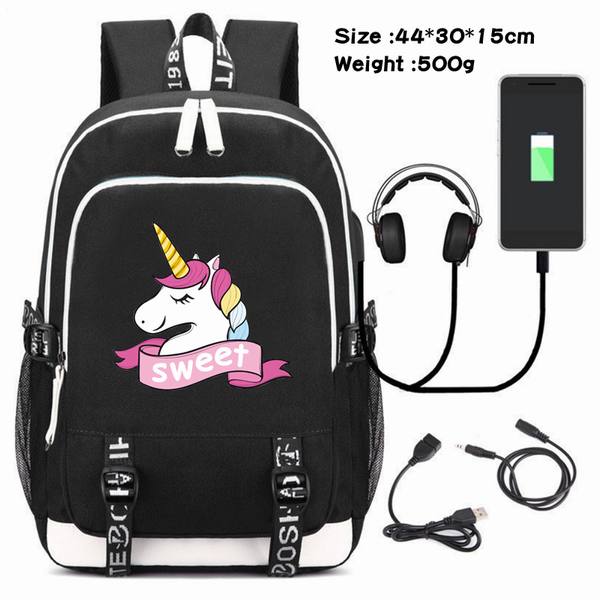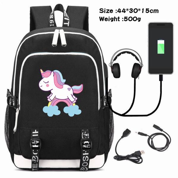 独角兽-090 动漫USB充电双肩包数据线背包(双线接口)