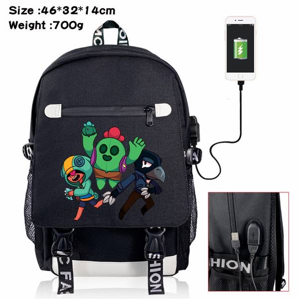 荒野乱斗-15A 黑色 彩印数据线双肩背包