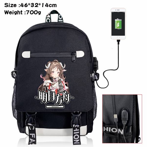 明日方舟-2A 黑色 彩印数据线双肩背包