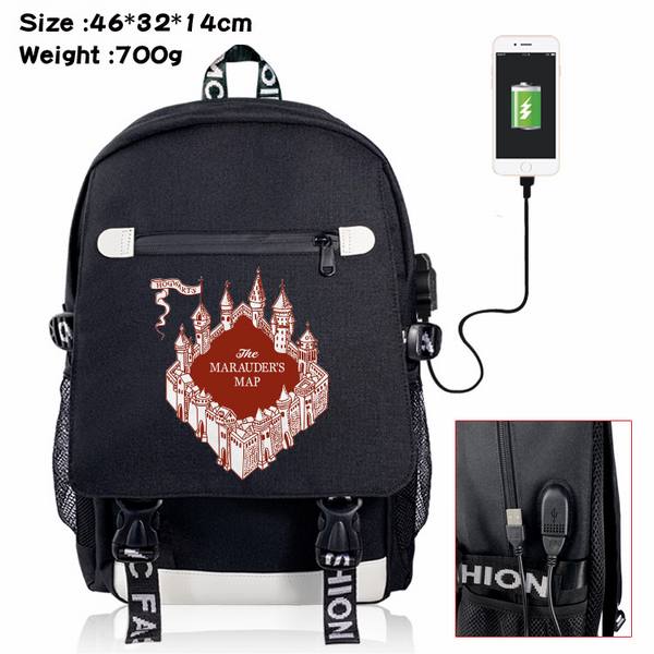 哈利波特-3A 黑色 彩印数据线双肩背包