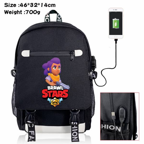 荒野乱斗-10A 黑色 彩印数据线双肩背包