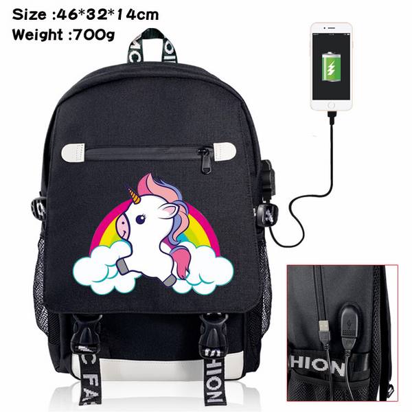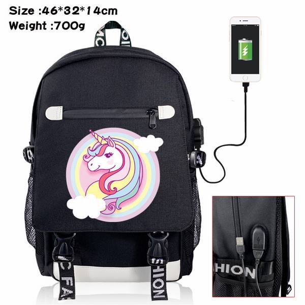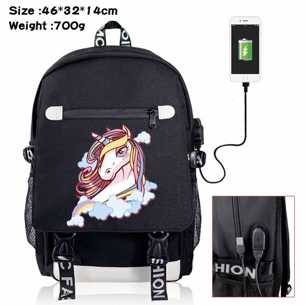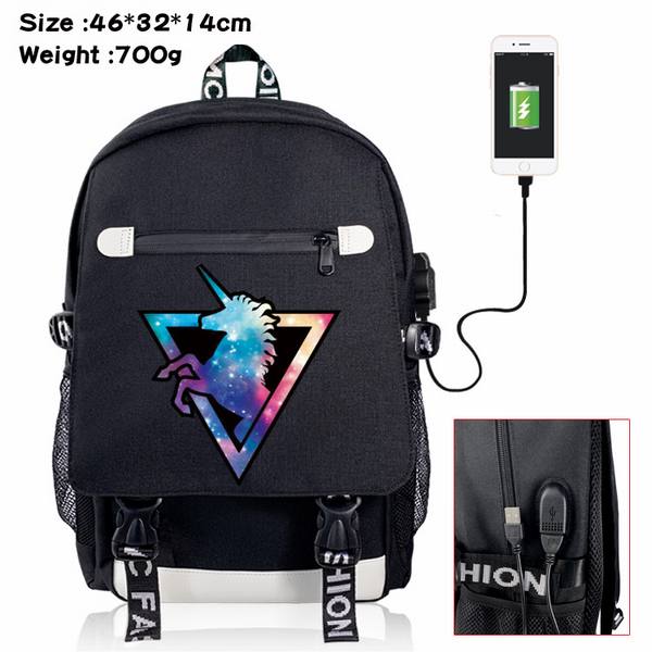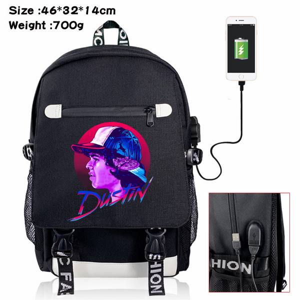 怪奇物语-7A 黑色 彩印数据线双肩背包