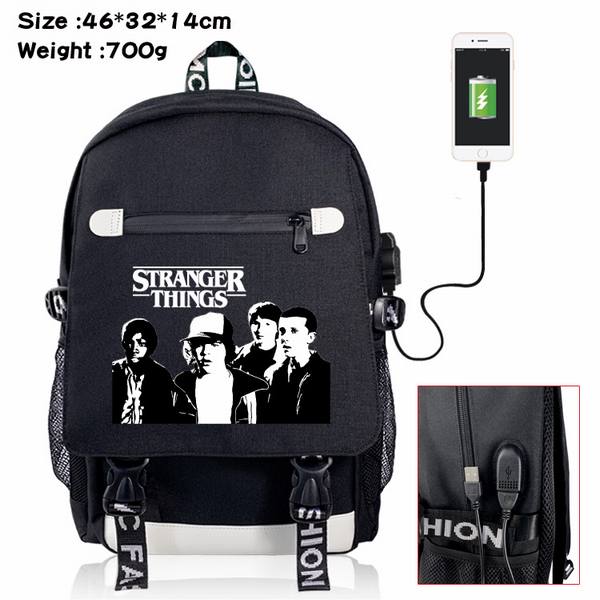 怪奇物语-3A 黑色 彩印数据线双肩背包