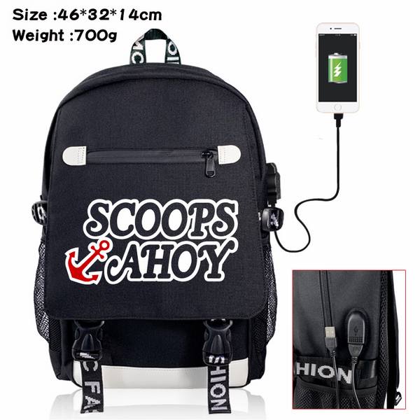 怪奇物语-4A 黑色 彩印数据线双肩背包