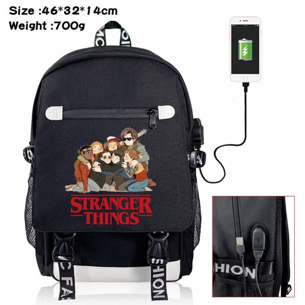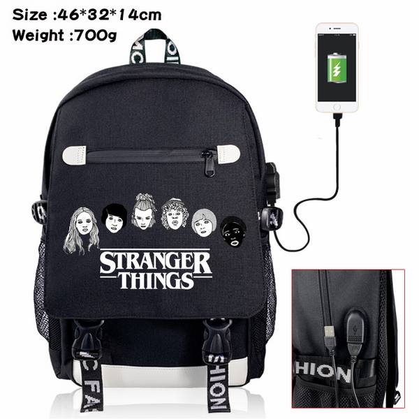 怪奇物语-5A 黑色 彩印数据线双肩背包