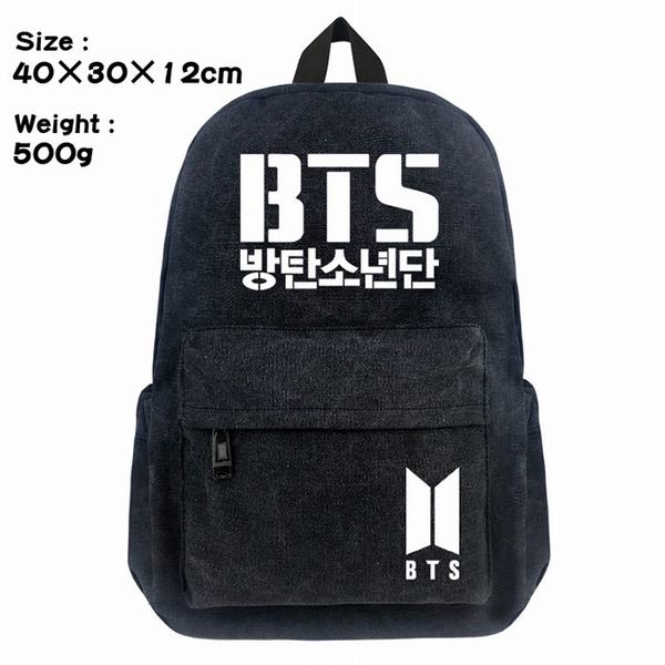 BTS防弹少年团BTS字母汉字标志帆布丝印双肩背包